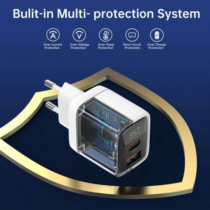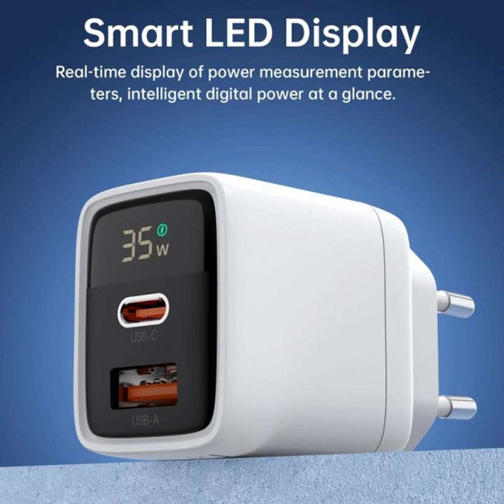 Equipped with Power Delivery (PD) technology, this charger delivers up to 35W of fast charging power, making it perfect for your USB-C laptops, tablets, smartphones, and other devices.