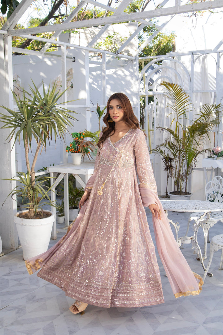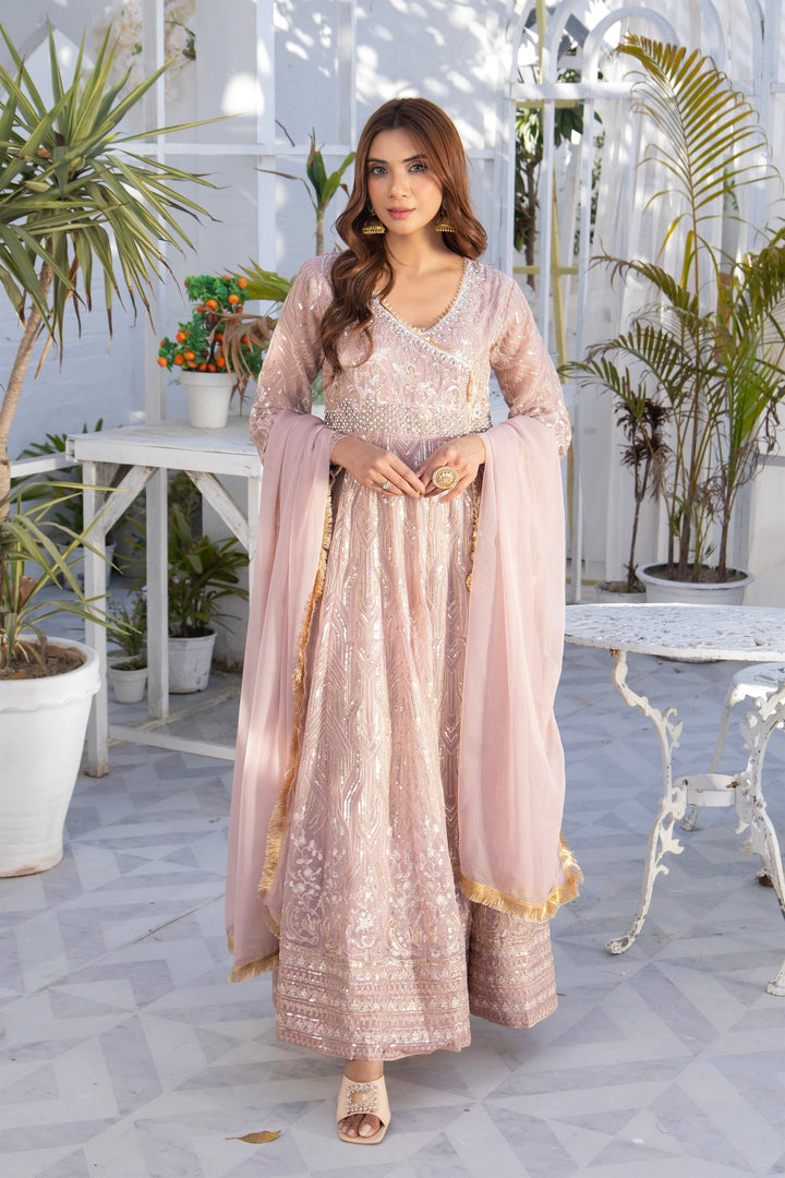 • This lovely angrakha style outfit sounds very beautiful and traditional, it is created using handcrafted resham & tilla work \nand the finest embroidered border on the sleeves and daman. A handmade dori tassel on the front of the shirt \nadds a unique and charming touch. Intimate events this season call for the pairing of this timeless shirt with a \nmalai crap bottom and chiffon dupatta with kiran lace border. This epitome of real pulchritude would provide \nyou with rich appeal in the event.
