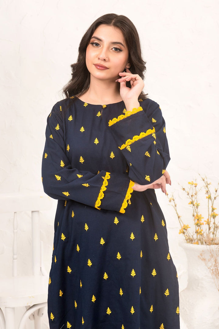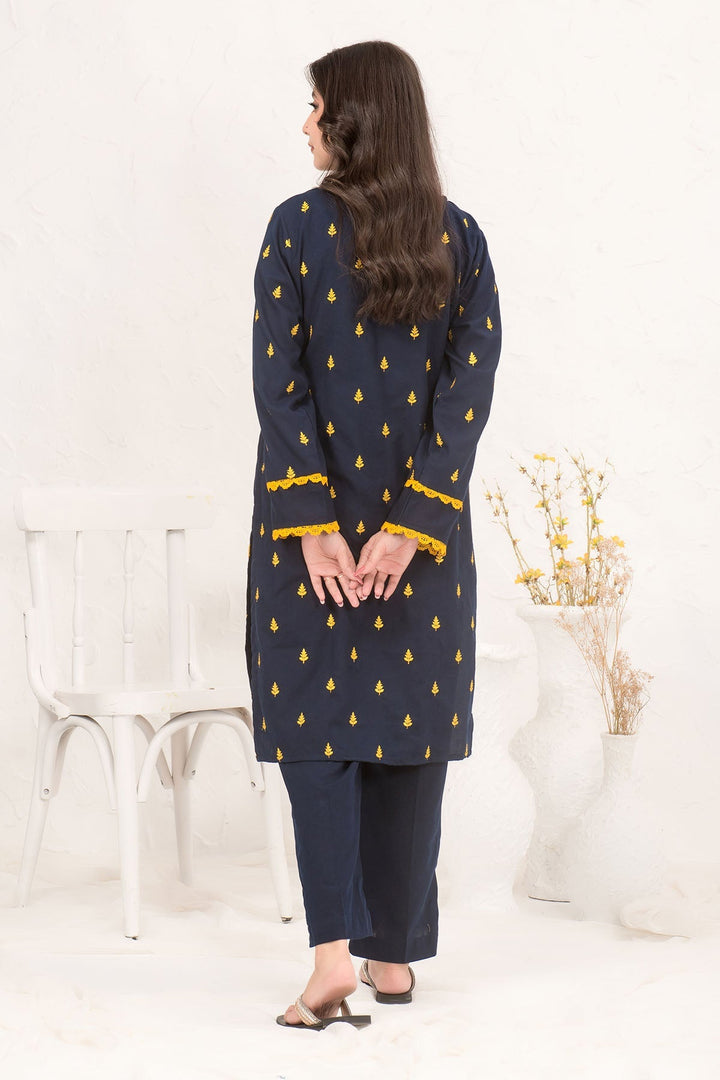 Top: Navy Blue Cotton Embroidered Kurta Bottom: Navy Blue Cotton Trouser |