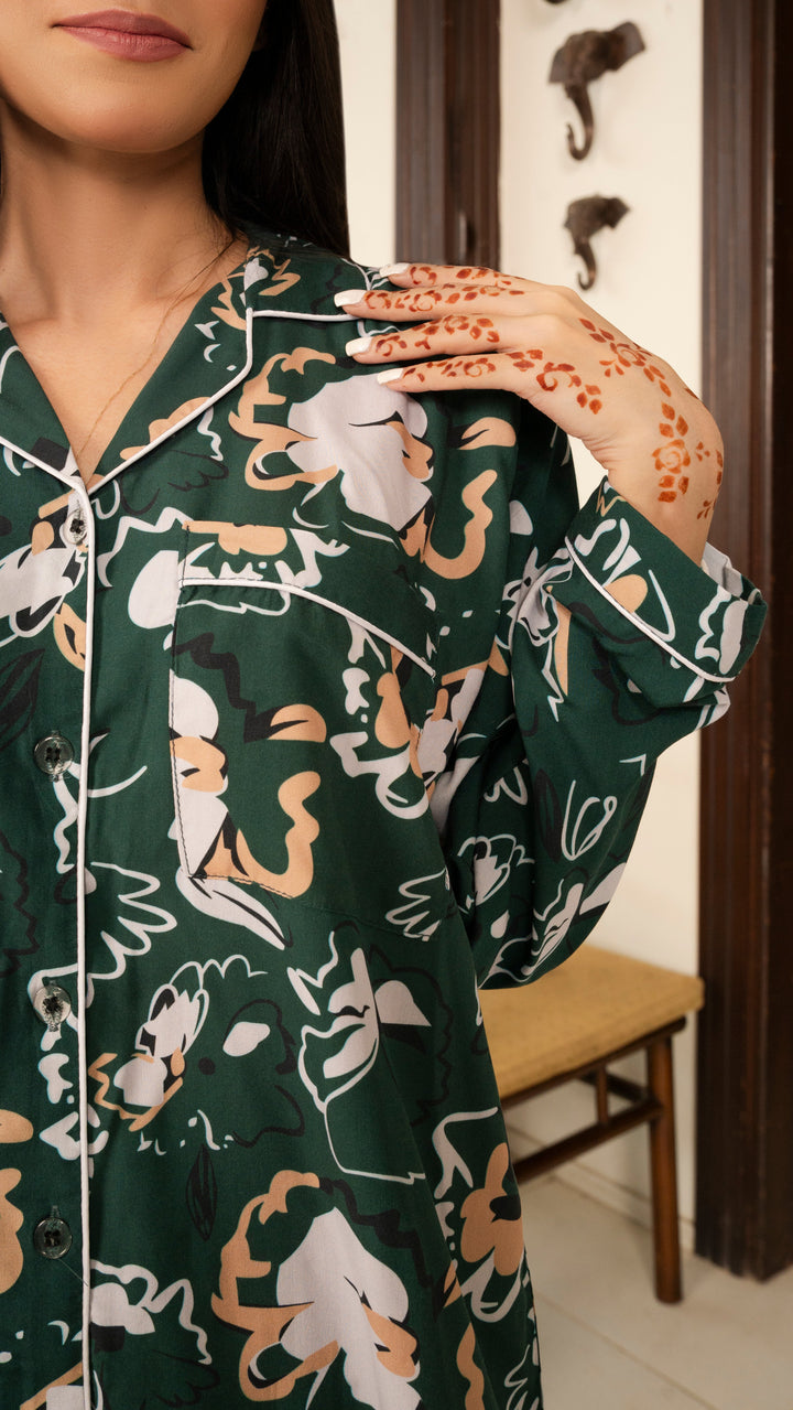 Dark Green Tulips PJ Set