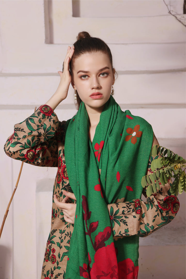 Experience an exquisitely (Unstitched) Digital Printed Dhanak shawl with a Digital Printed Dhanak suit for a new go this winter season.The article includes:Digital Printed Dhanak Shawl: 2.5 yardsDigital Printed Dhanak Shirt & Trouser Fabric: 5.4 yardsDISCLAIMER: COLORS MIGHT APPEAR SLIGHTLY DIFFERENT DUE TO THE PHOTOGRAPHIC/LIGHTING EQUIPMENT USED. SOME ACCESSORIES/EMBELLISHMENTS USED ARE ONLY FOR SHOOT PURPOSES AND NOT PART OF THE ACTUAL SUIT.