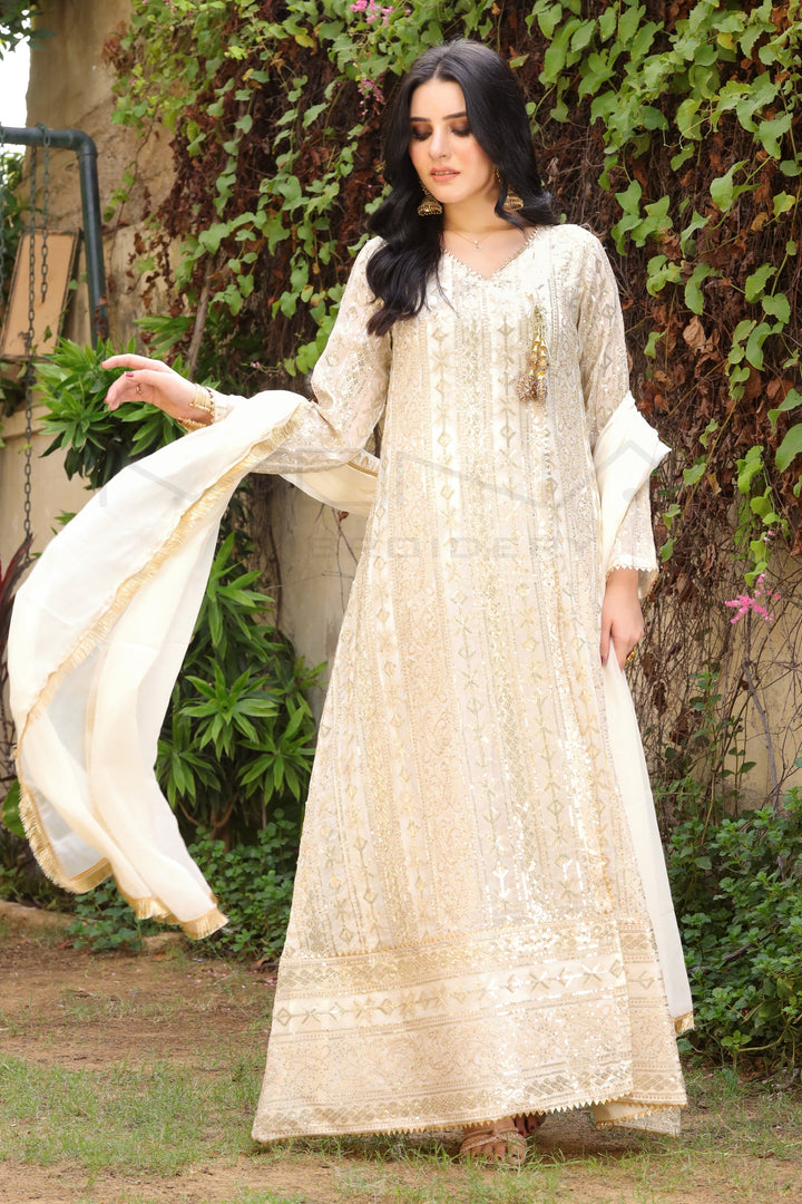 Manahils Stitched Formals Kurti 122-Divine- Off White
