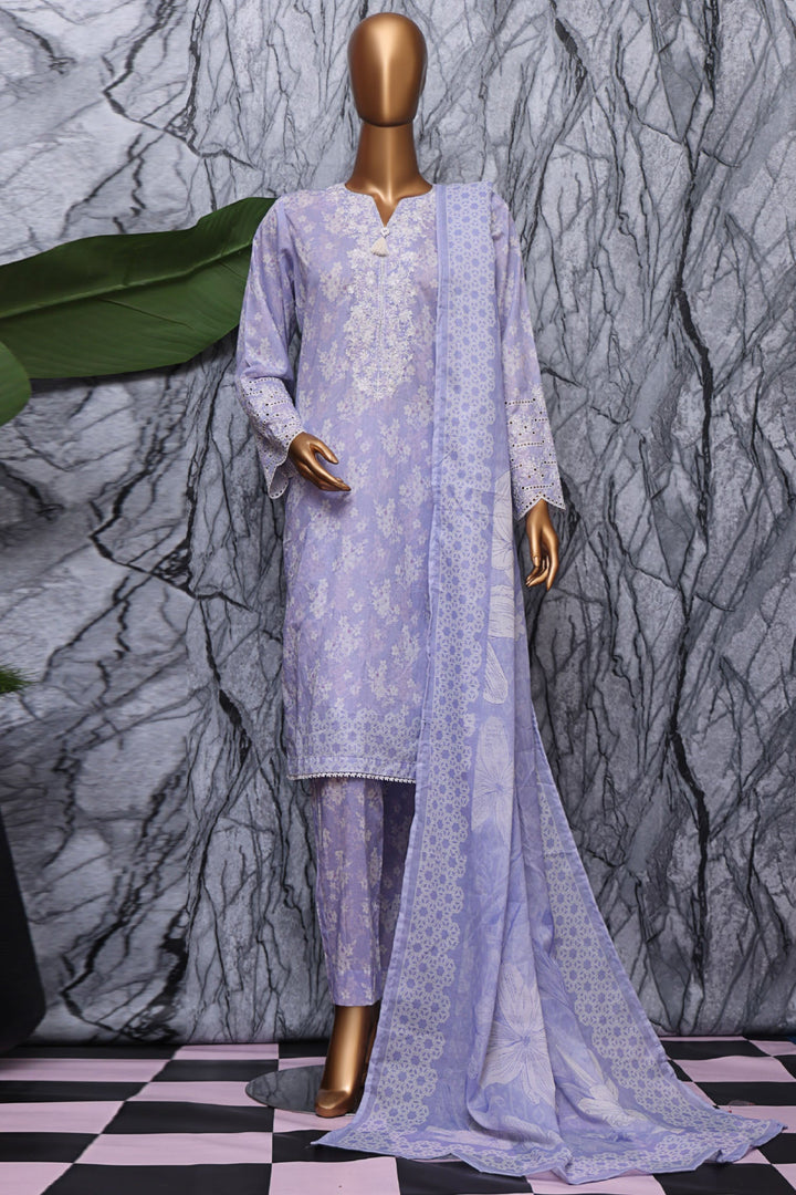 - Premium Digital Printed Lawn Shirt With Embroidered Neck & Sleeves