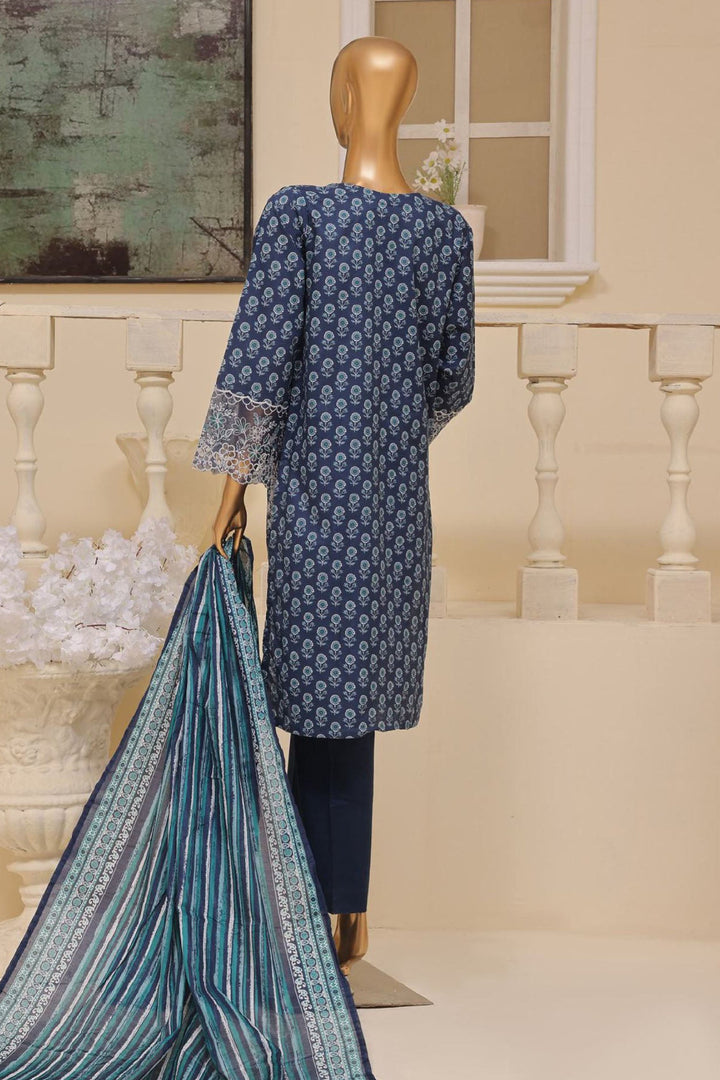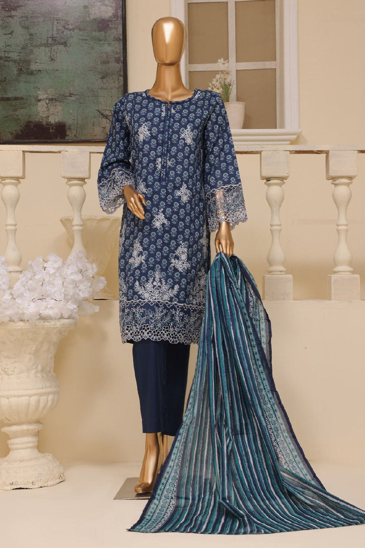 Eid Ke Rang By Bin Saeed Stitched 3 Piece Chikankari Lawn Collection'2025-SM-1767-Blue