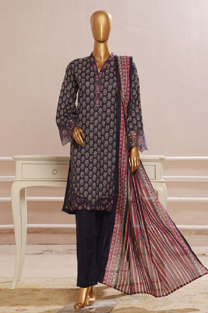 Eid Ke Rang By Bin Saeed Stitched 3 Piece Chikankari Lawn Collection'2025-SM-1768-Blue
