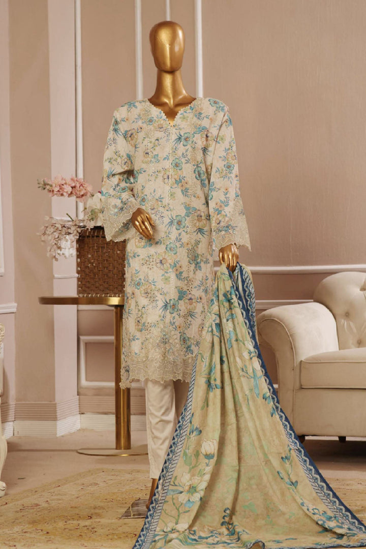 Step into understated elegance with the Eid Ke Rang By Bin Saeed Stitched 3 Piece Chikan Kari Lawn Collection. This sophisticated set includes an embroidered lawn shirt, an intricately designed dupatta, and plain trousers, offering a perfect balance of tradition and modern style.