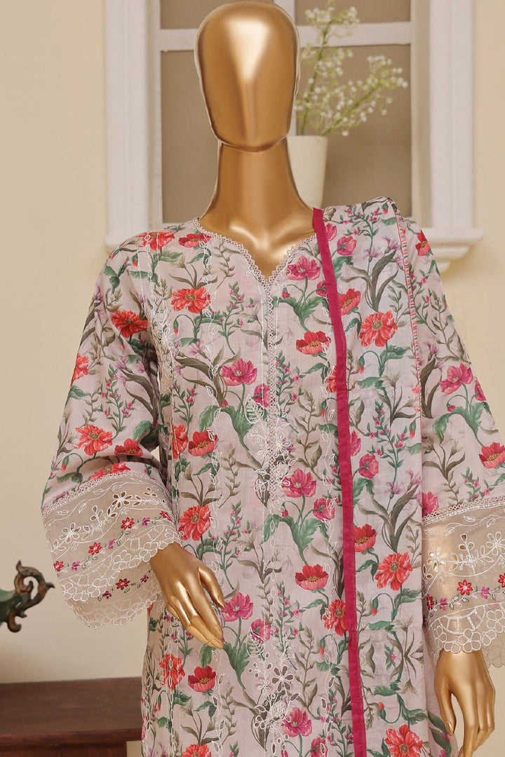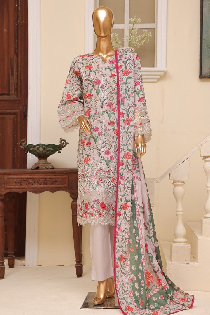 Eid Ke Rang By Bin Saeed Stitched 3 Piece Chikankari Lawn Collection'2025-SM-1780-Grey