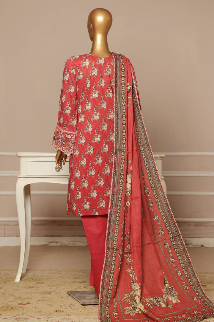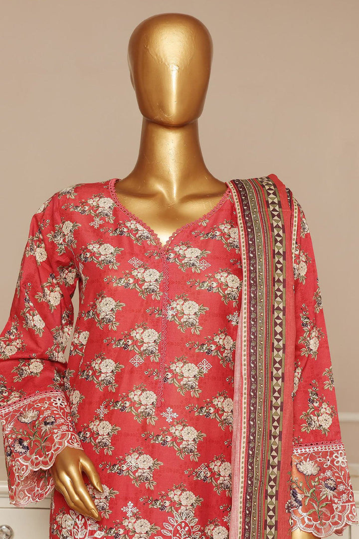 Eid Ke Rang By Bin Saeed Stitched 3 Piece Chikankari Lawn Collection'2025-SM-1783-Red