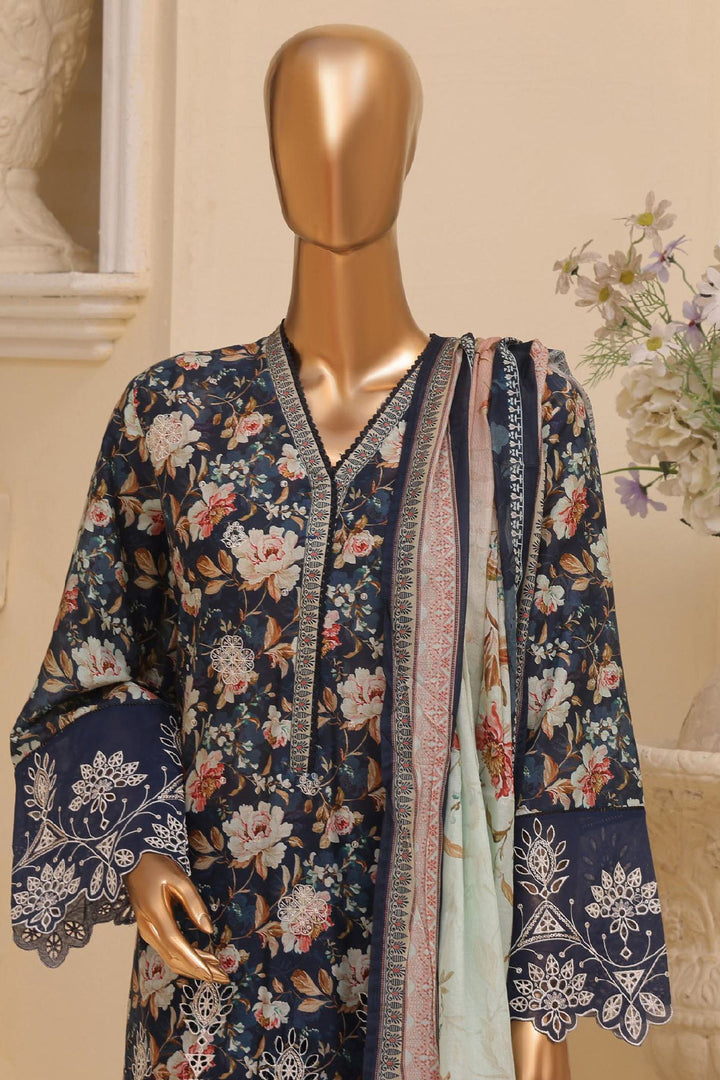 Eid Ke Rang By Bin Saeed Stitched 3 Piece Chikankari Lawn Collection'2025-SM-1781-Blue