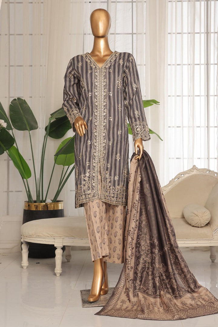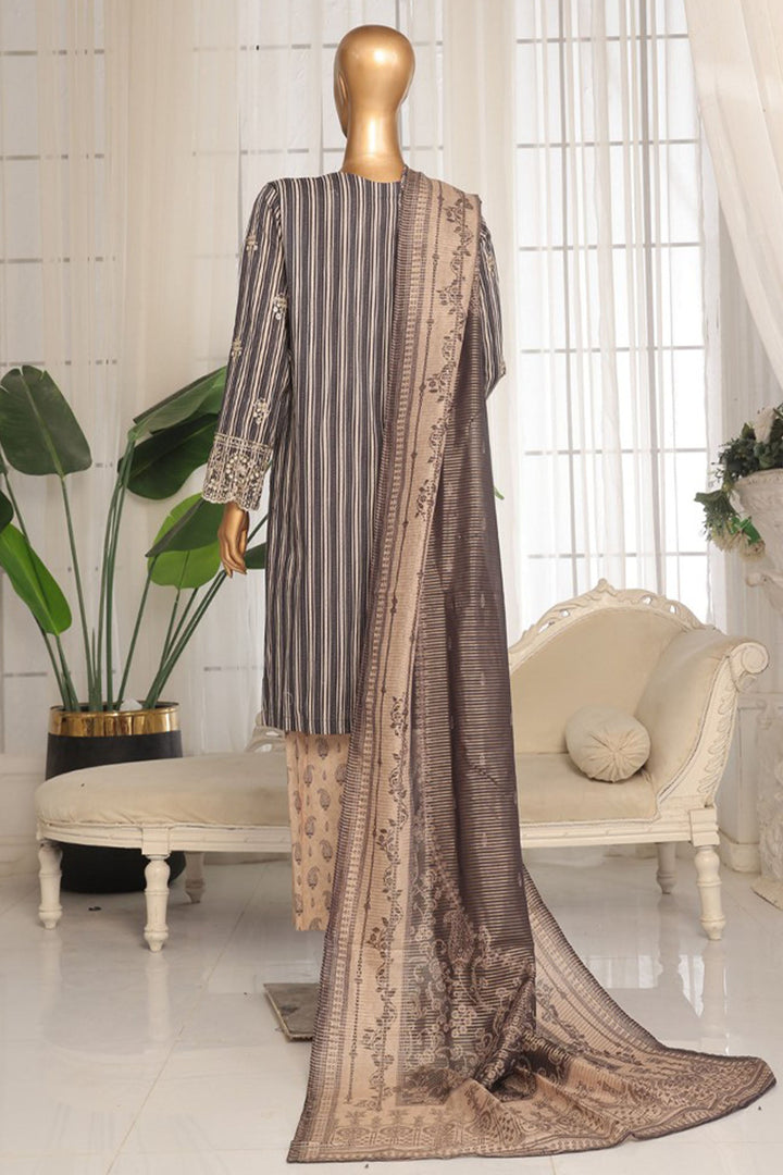 Eid Ki Khushiyan by Bin Saeed Stitched 3 Piece Luxury Self & Stripe Collection'2025-SM-1853