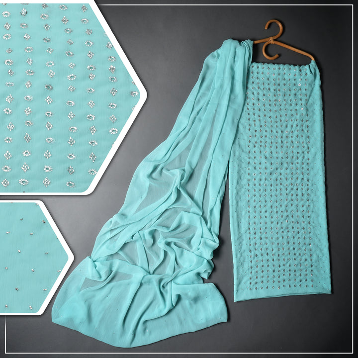 Elegant Chiffon with Mukesh embroidoyr women's wear, that meke you feel like royalty with intricate details of traditional Multani Art.-Aqua