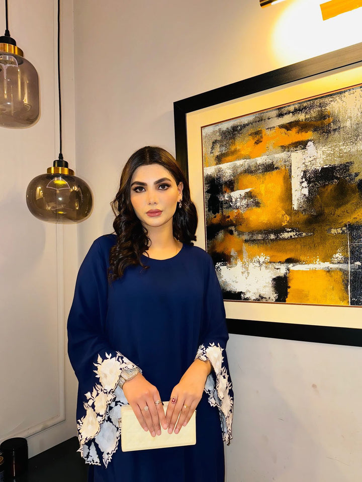 Whether attending a formal event, a business meeting, or a special gathering, this embroidered sleeves outfit makes a bold fashion statement. It€™s versatile enough to be paired with various accessories, allowing you to personalize your look without compromising on elegance. The navy color is timeless, exuding a sense of confidence and sophistication.