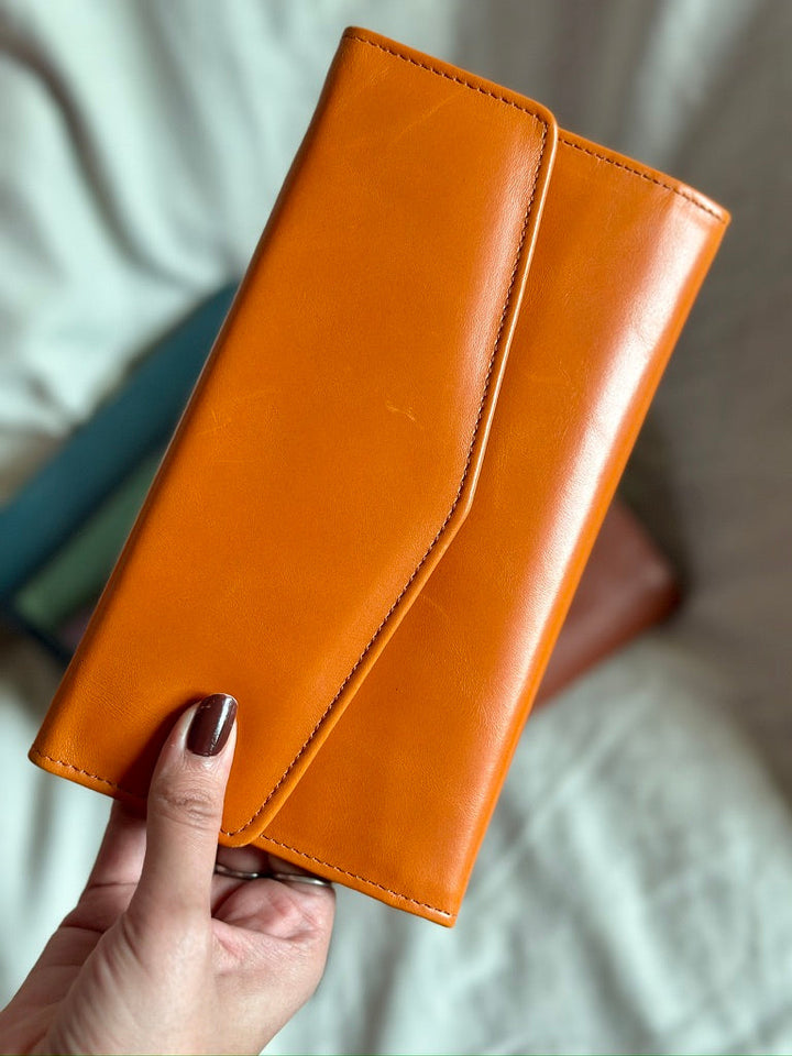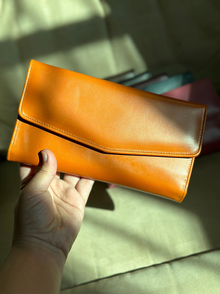 Meet your new favorite spacious clutch wallet! Crafted from high-quality cow leather, this chic envelope-design wallet is designed to fit all your essentials without needing a handbag. With a dedicated mobile phone pocket, change pocket, card slots, and a secure zipper compartment, it has a spot for everything you need. And the best part? It comes in a bunch of cool, funky, and vibrant colors, so you can match it to your mood, outfit, or just because you love a pop of color!
