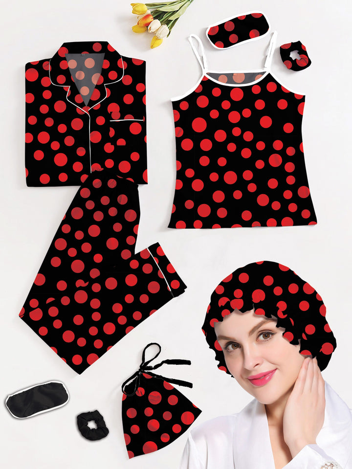 - 7-Piece Set: This comprehensive set includes a sophisticated night dress, matching pajamas, a sleek robe, a delicate tank top, chic shorts, and a pair of plush slippers, offering everything you need for a stylish and comfortable night.