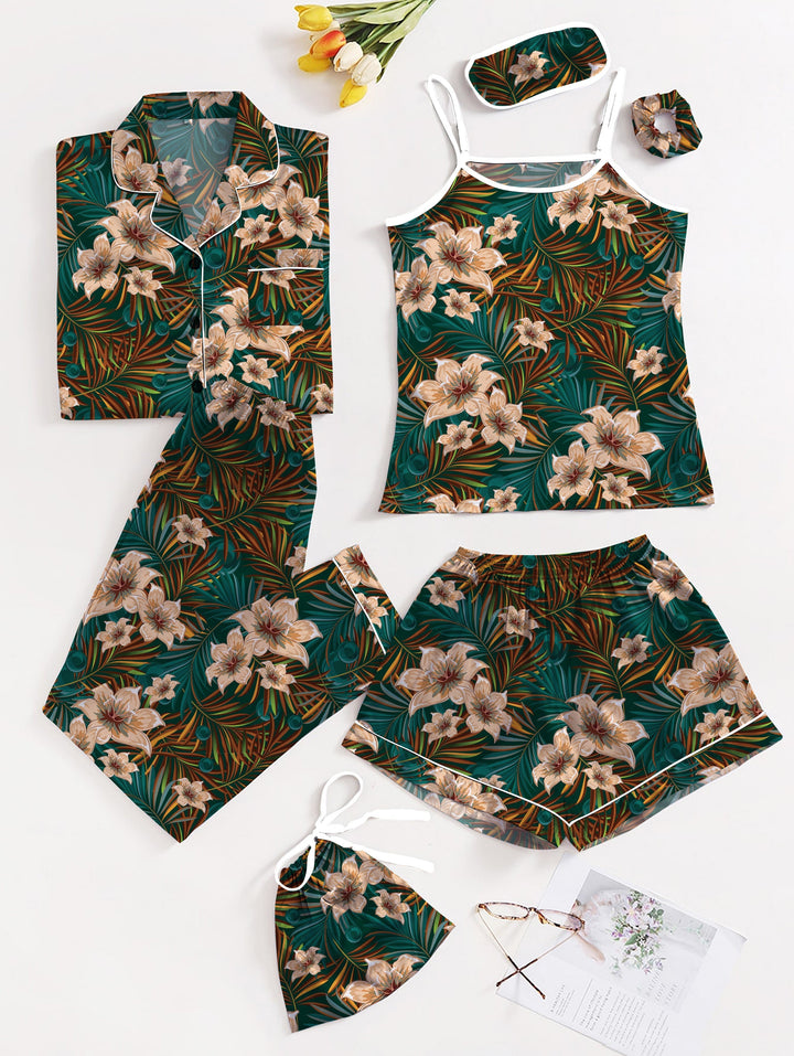 Studio By Arj Eshaal Omani Dreamy Serenity – Luxurious Silk Pajama Set Silky Finish Night Dress For Women and Girls 7 Piece Night Wear Women's Pajama Sets