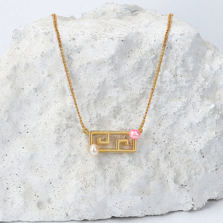 Embrace the whimsical elegance of the Euonia Neckalce. This exquisite necklace features a bold, yet elegant design, with a sleek Greek pattern, handcrafted meticulously. The Euonia Set is a thoughtful and unique gift for you and your loved ones!