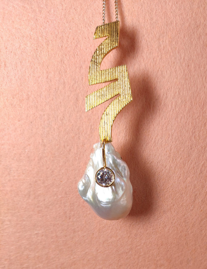 A mesmerizing statement pendant. Precision design and meticulous craftsmanship featuring white Baroque Pearl with a beautiful abstract pattern, adds up glamour to your outfit.