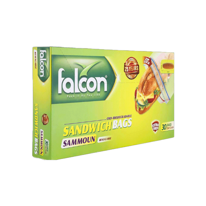 Falcon Zip Lock Sandwich Bags 30s 25x12cm