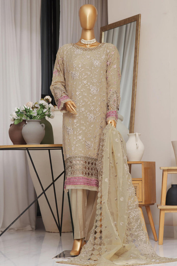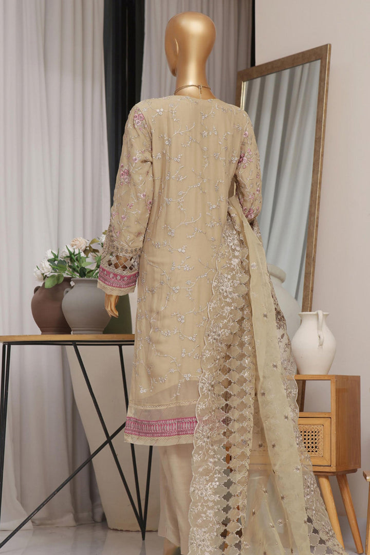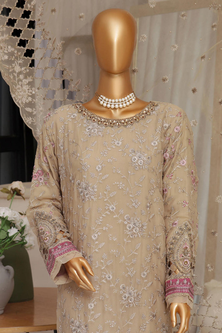 Fasaane By HZ Stitched 3 Piece Formals Chiffon Vol-05 Collection'2024-HZK-171-Dark Beige