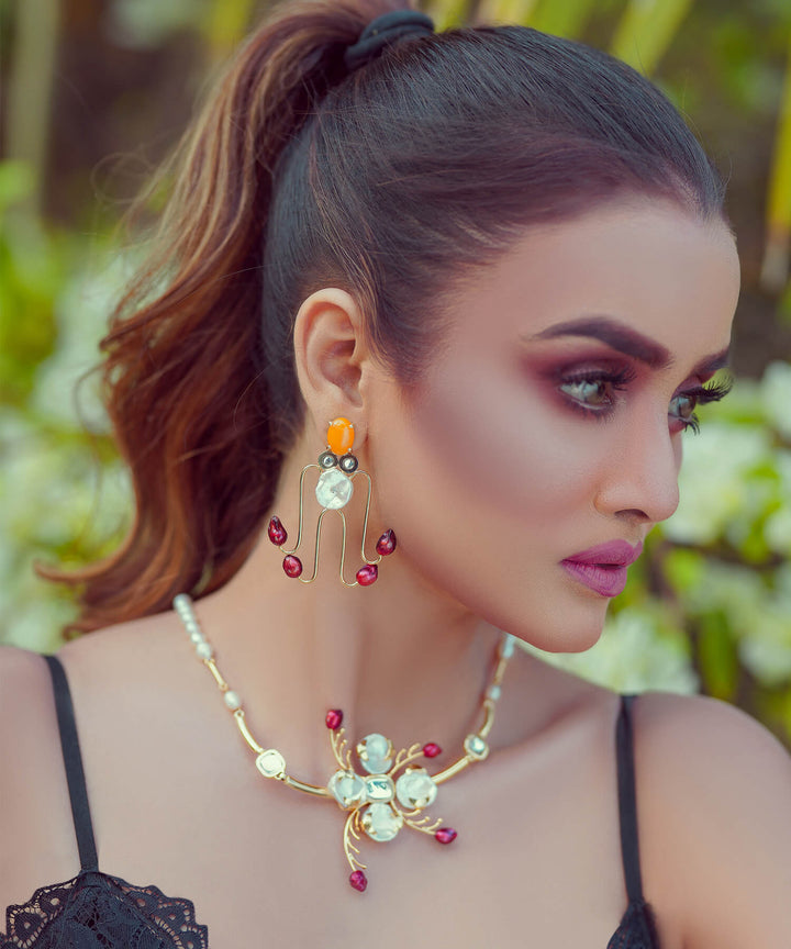 This necklace will them sing ' This girl is on fire' for you. Add a sizzle to your style with this eccentric necklace that is intricately put together with unique Freshwater Pearls and Kundan.