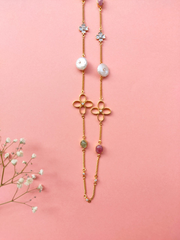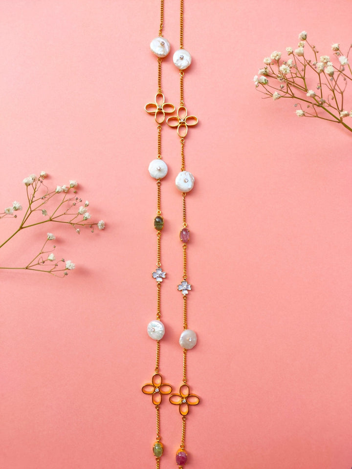 Delicate and dainty this floral Pearl Necklace is perfect for when you want to stay simple yet classy. This necklace will make you stand out. Handcrafted on 925 Sterling Silver, floral pattern adorned with freshwater pearls.