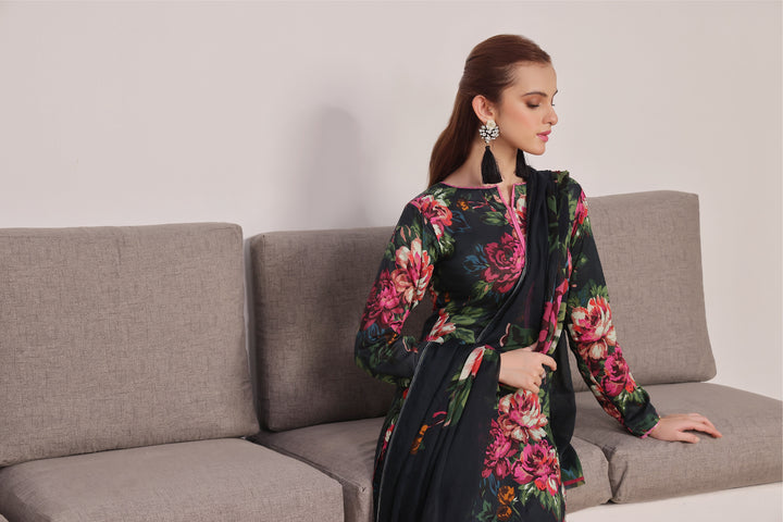 The article includes:Unstitched: Digital Printed Shirt (3 yards)Digital Printed Trouser (2.5 yards)Digital Printed Chiffon Dupatta (2.5 yards)Fabric Type: LawnNote: To get the same stitching style, please purchase our two dresses.Disclaimer: Actual product color may vary slightly from the image.
