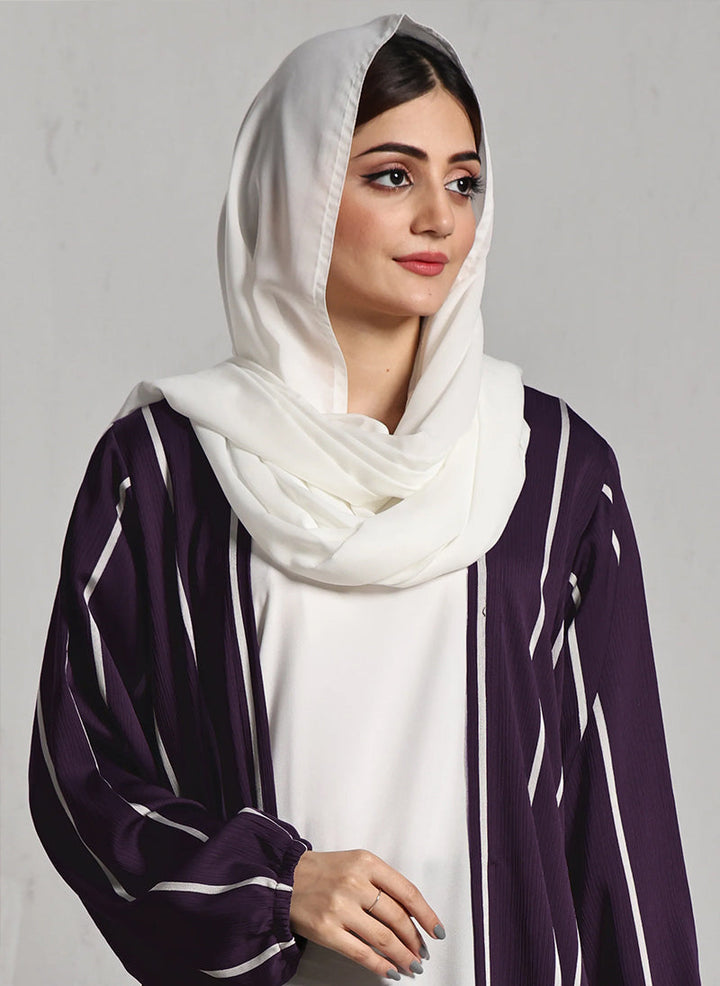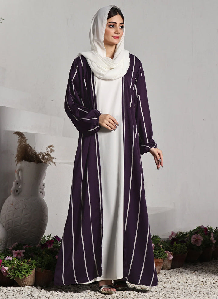 Purple Palette: The combination of Purple color exudes versatility and sophistication, making this Abaya suitable for various occasions, from casual outings to special events.