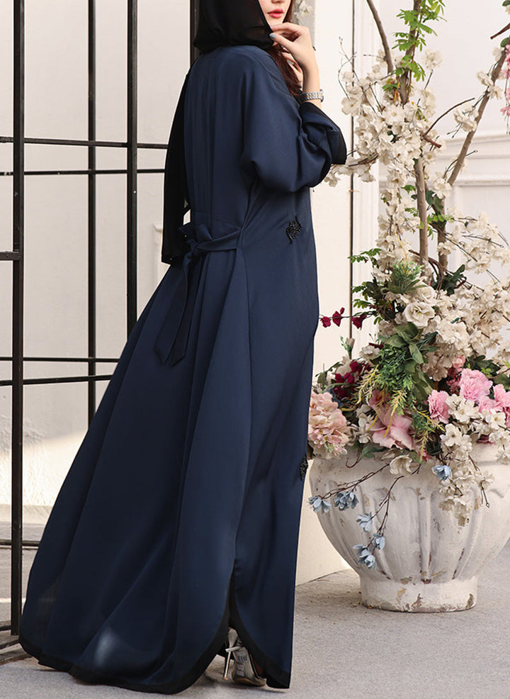 Navy Blue Palette: The Navy Blue exudes richness and sophistication, making this Abaya a versatile choice suitable for various occasions, from casual outings to special events.