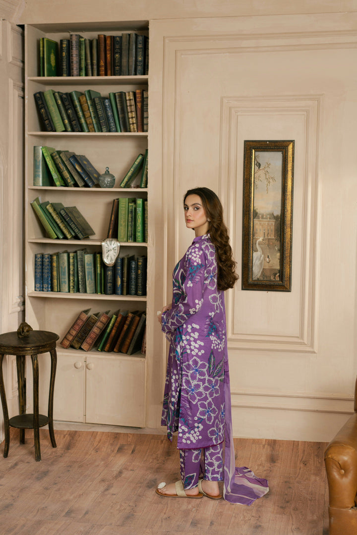 The article includes:Unstitched: Digital Printed Shirt (3 yards)Digital Printed Trouser (2.5 yards)Digital Printed Chiffon Dupatta (2.5 yards)Fabric Type: LawnDisclaimer: Actual product color may vary slightly from the image.