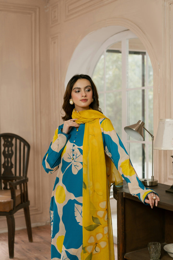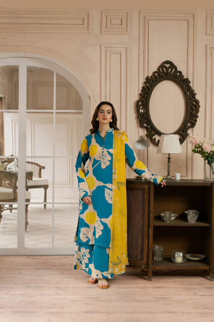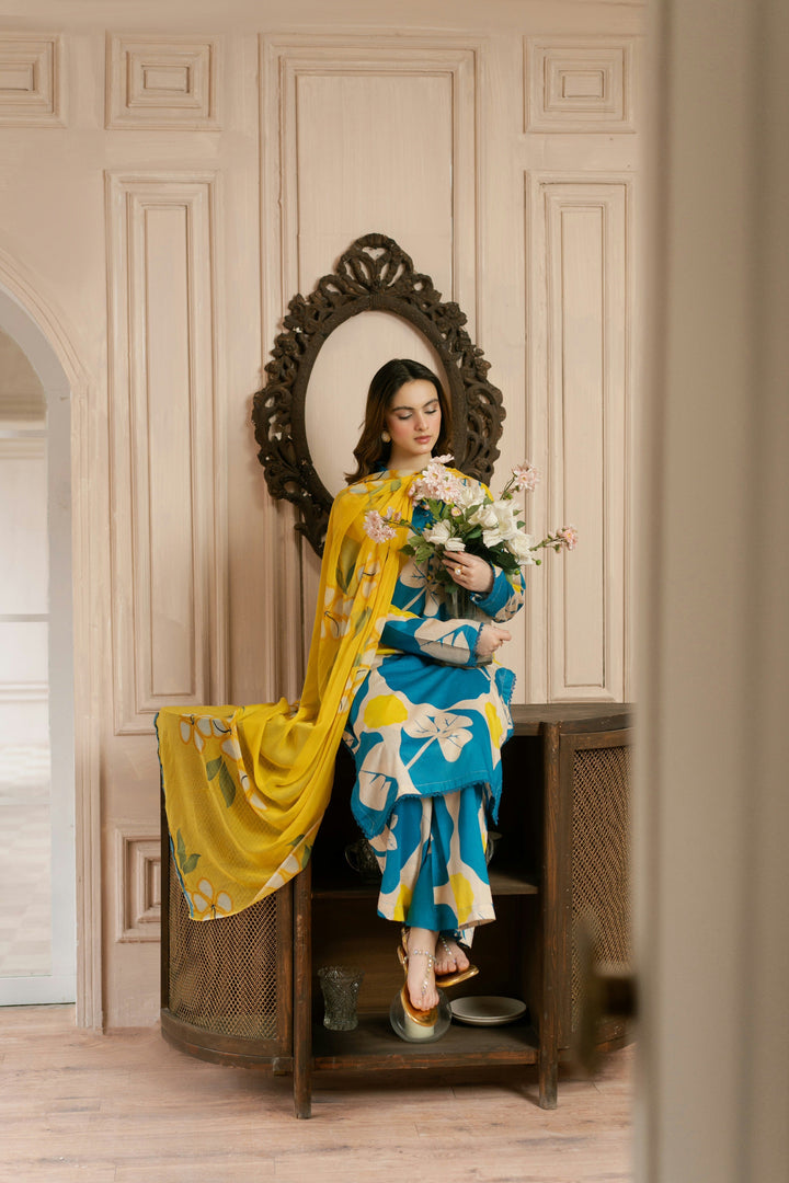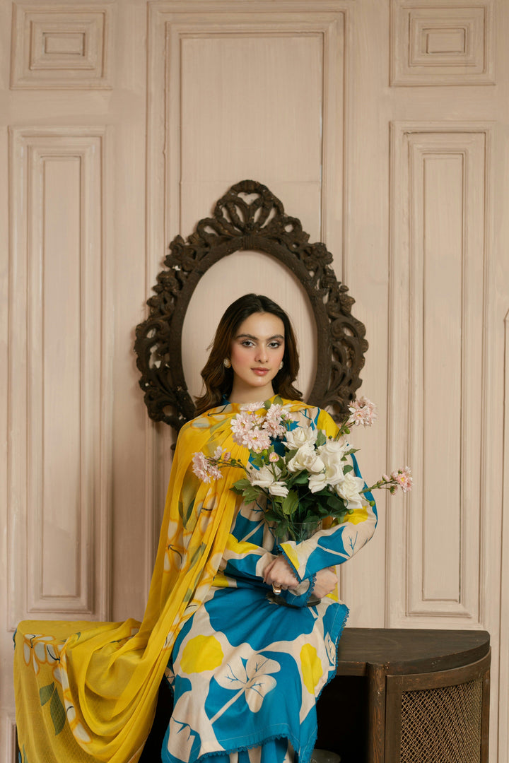 The article includes:Unstitched: Digital Printed Shirt (3 yards)Digital Printed Trouser (2.5 yards)Digital Printed Chiffon Dupatta (2.5 yards)Fabric Type: LawnDisclaimer: Actual product color may vary slightly from the image.