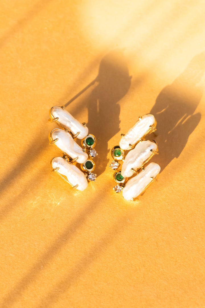 The irresistible Green Ivy earrings are designed with Green Crystals Stones and Real Freshwater Biwa Pearls adding just enough bling to make a statement.