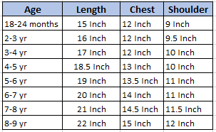 - Size chart in images
