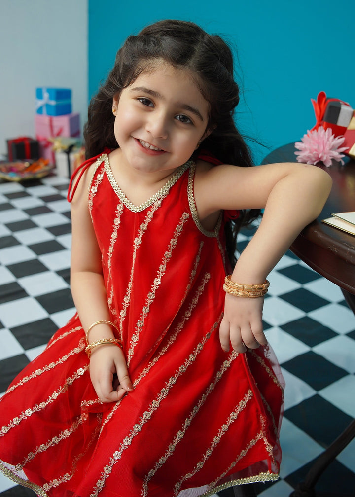 Enhance your little girl's wardrobe with this stylish formal wear dress. Made with high-quality net and malai fabric, it offers both comfort and sophistication. The chiffon dupatta adds an elegant touch to complete the look. Perfect for any formal occasion, your little girl will look and feel her best in this stunning dress.
