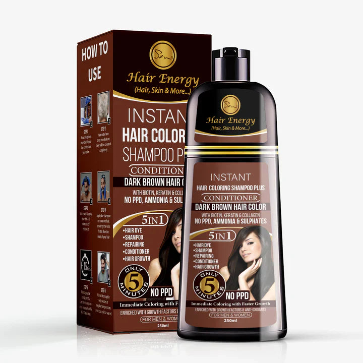 Hair Energy Instant Hair Coloring Shampoo+conditioner (brown) 250 Ml