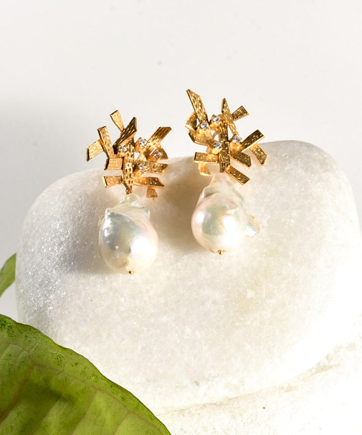 Subtle but sharp, that's how your jewelry should be. Cluster of carved gold leaves and a dangling Baroque pearl will be a sight to see when it's part of your adornment.