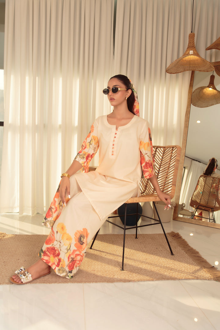 Zaman By MNM Stitched 2 Piece Cotton Lawn Collection-Honey flower