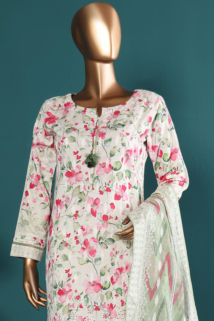 - Digital Printed Embroidered Chikankari Khaddar Shirt.