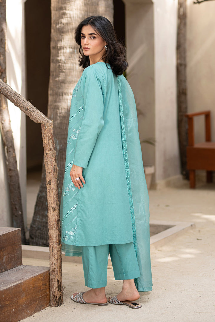 Product Details: Ilana – A mesmerizing teal silhouette with delicate embroidery, paired with tailored culottes and a flowy cotton net dupatta for an effortless allure.