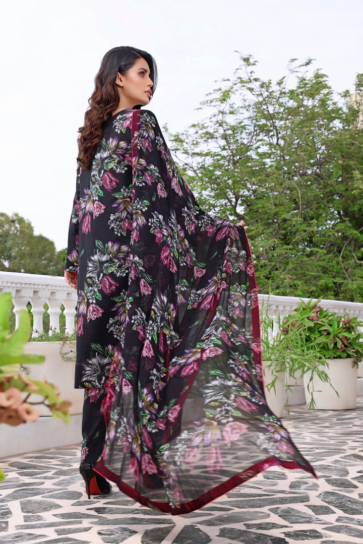 The article includes:Unstitched 3PCDigital Printed Shirt 3 yardsDigital Printed Chiffon Dupatta Digital Printed Trouser 2.5 yards
