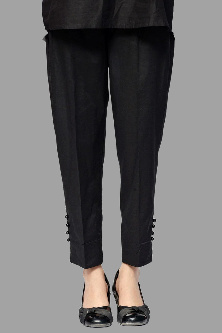 1 Piece Trouser – Solid Embellished Trouser with four Pearls at Bottom with slit opening