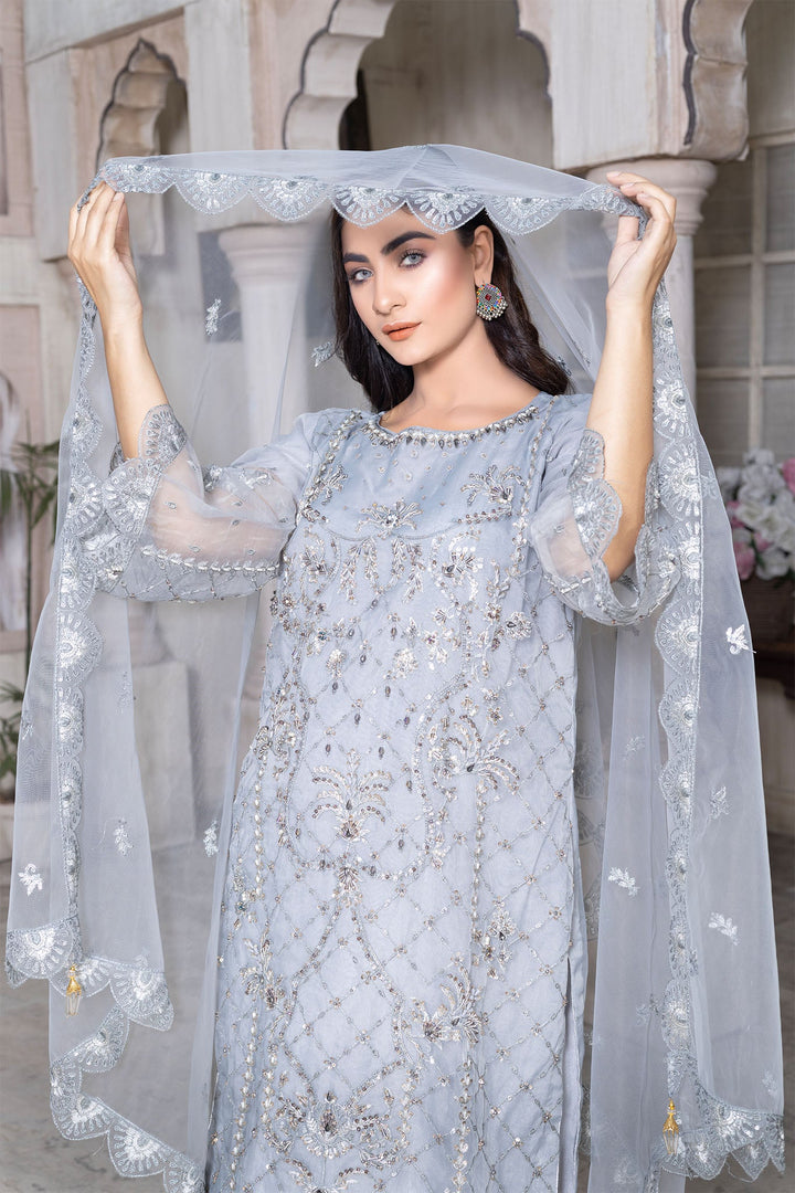 Embroidered Sequins Organza Front with Heavy Hand Embellishment Kora, Dabka work with Patch