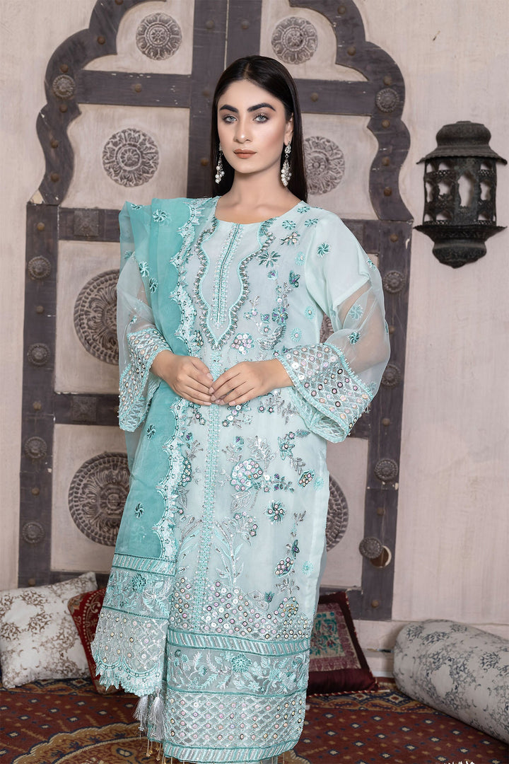 Embroidered Sequins Organza Front with Heavy Hand Embellishment Kora, Dabka work with Patch