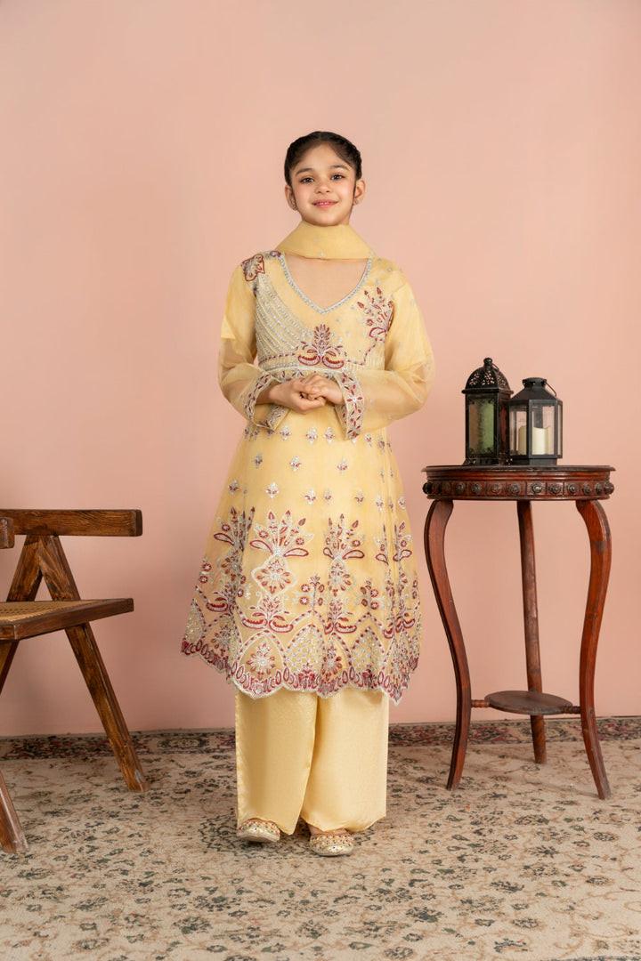 Khayat Stitched 3 Piece Kids Formals Collection'2025 Lemon Yellow