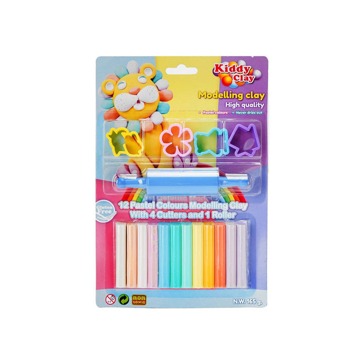 Kiddy Clay 12 Colors Modeling Clay 5 Molds & 1 Roller St-165-12p