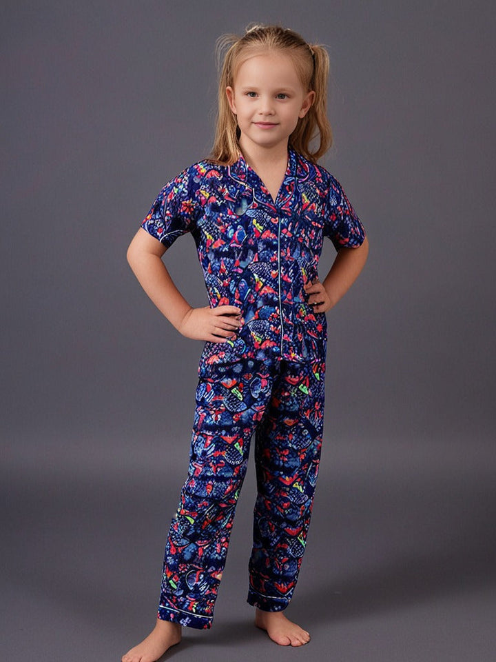 Kids klub cozy sleepwear breathable & light weight pajama set-animal; blue; multicolor