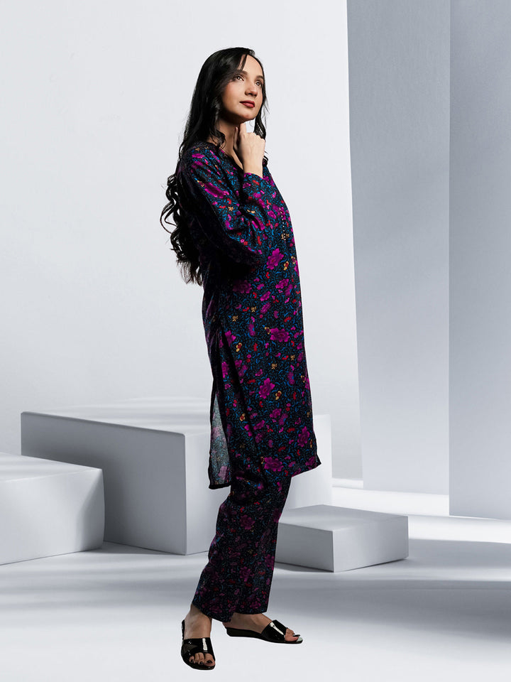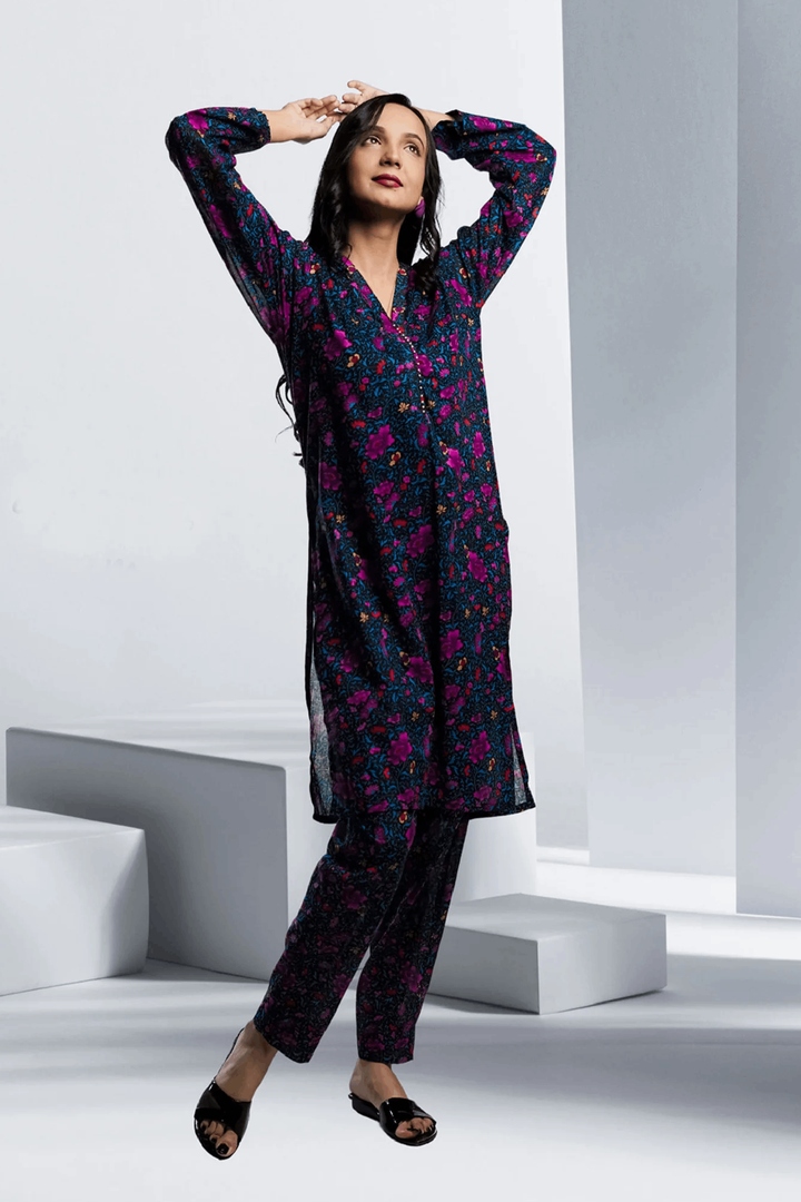 Ahlam Soft Cambric Stitched-Lavender Breeze co ord Set Collection'2024