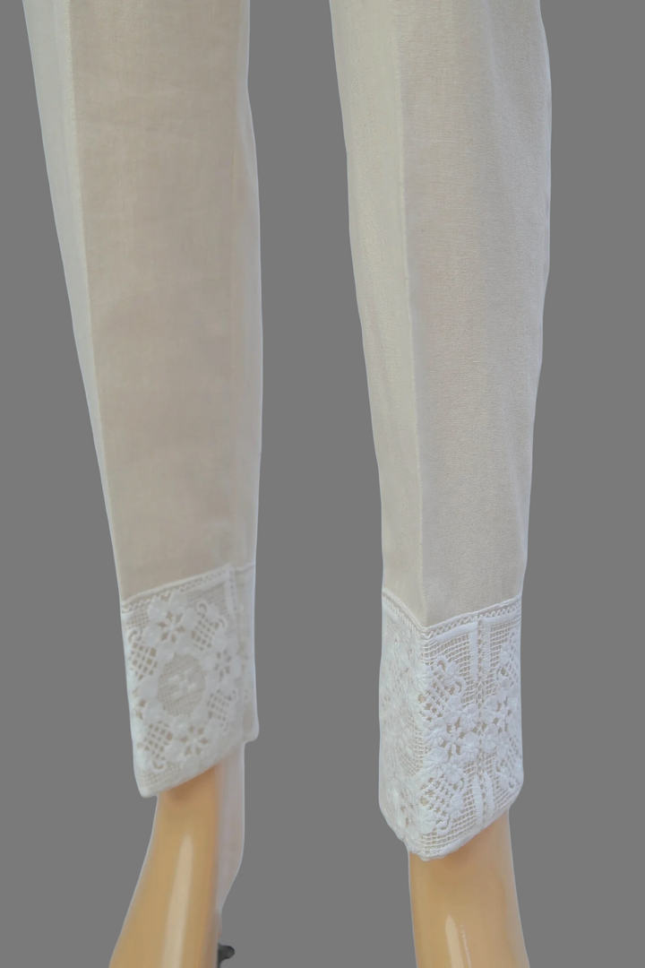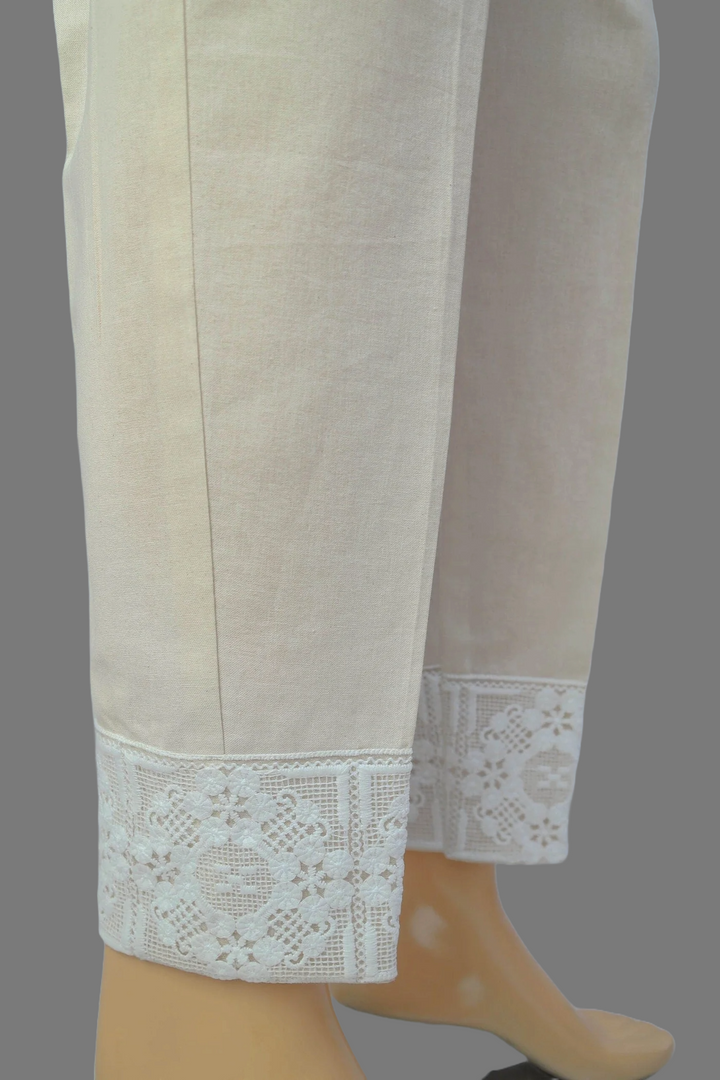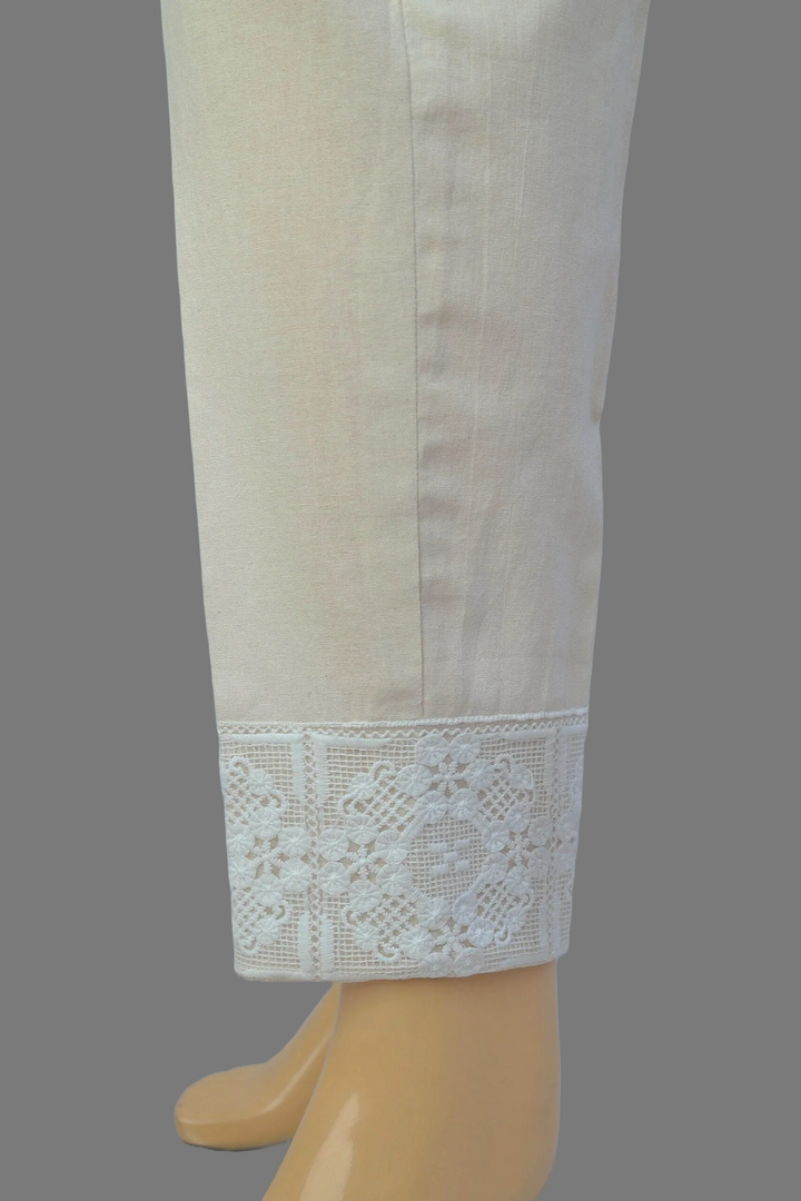Urban Cut Linen Ivory Fabric Heavy Embroidery Stitched Trouser - 100% Cotton - Pre Shrinked