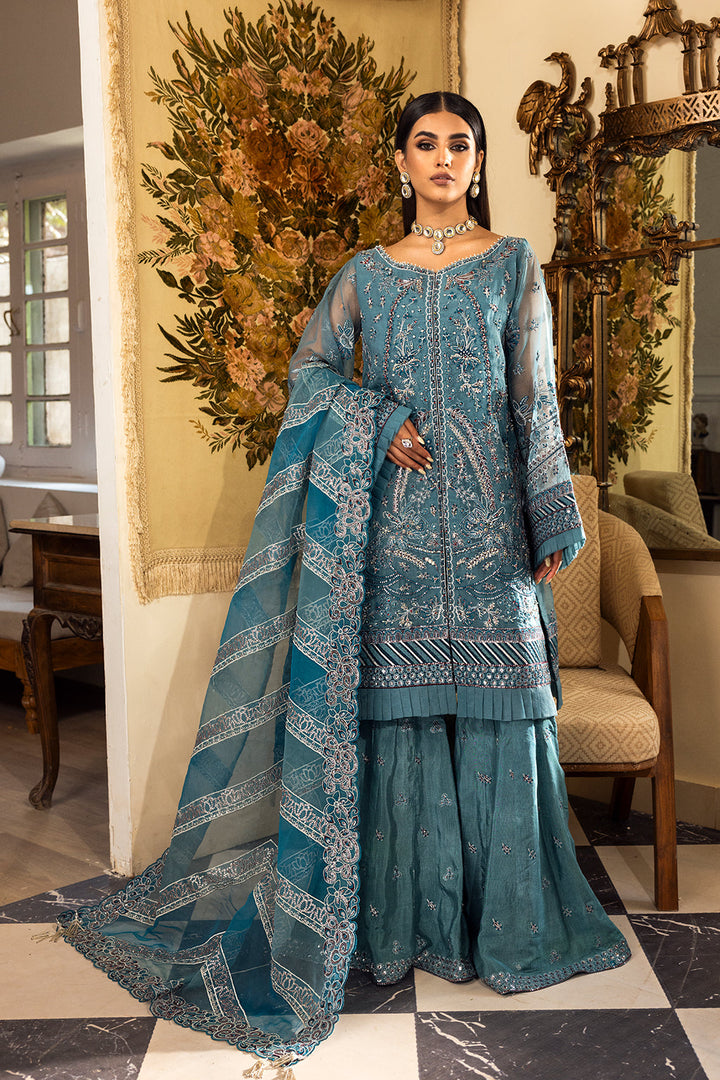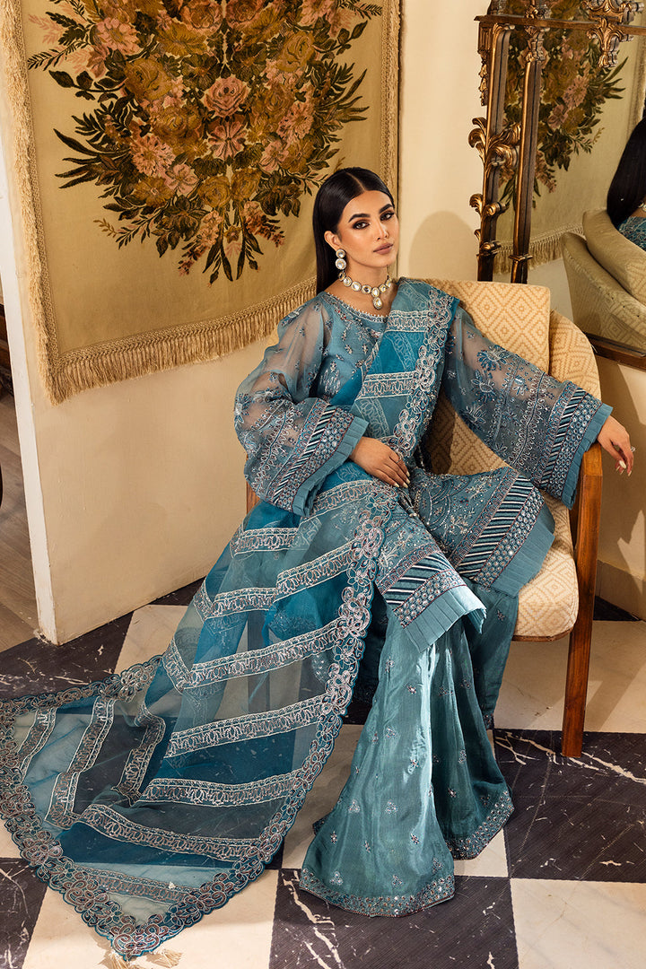 Indulge in the poetry of elegance with this exquisite ensemble by Emaan Adeel. Each element, from the ethereal organza fabric of the shirt to the delicate touch of the organza dupatta, and the regal allure of the raw silk trousers, is a brushstroke on the canvas of beauty. Let this dress be a reminder of life's inherent beauty, where every thread tells a story of grace and charm.