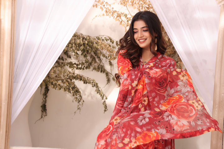 The article includes:Unstitched 3PCDigital Printed Shirt 3 yardsDigital Printed Chiffon Dupatta Digital Printed Trouser 2.5 yards