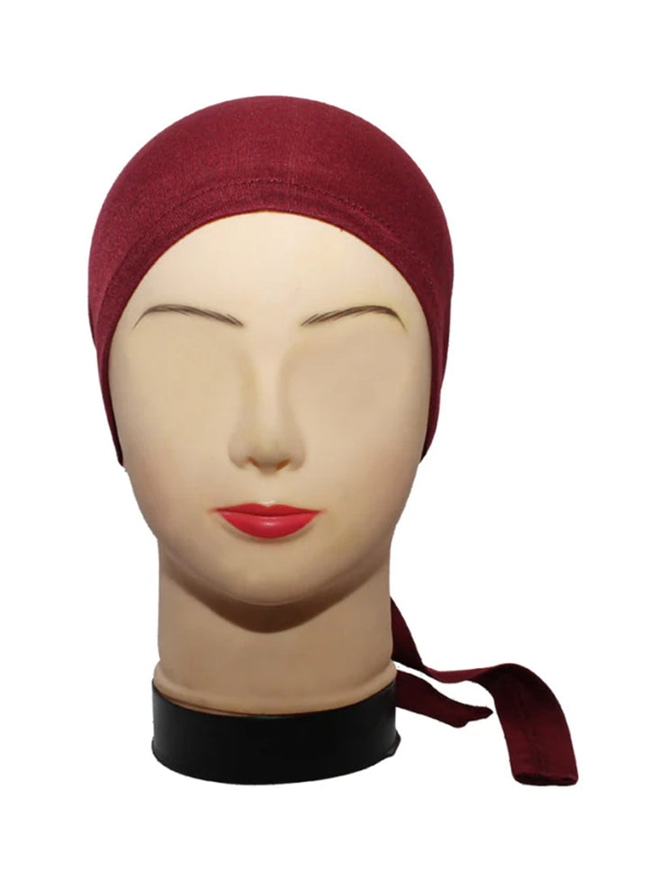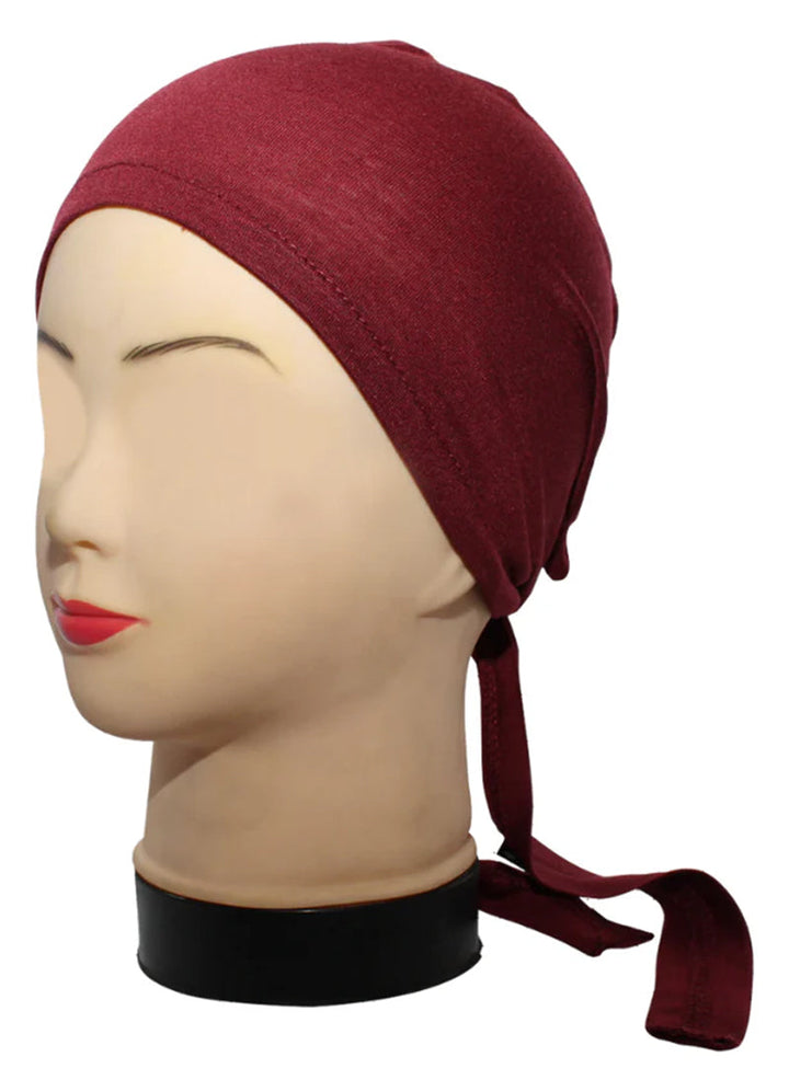 Hijab Ul Hareem Maroon Plain Tie Bonnet Cap for Hijabs